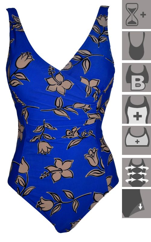 Blauer Badeanzug mit floralem Aufdruck ausgestattet mit integrierten Softcups BH