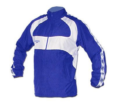 - Blaue Speedo Trainingsanzug JACKE mit weißen Einsätzen und weißem Speedo Logostreifen über die Ärmel.