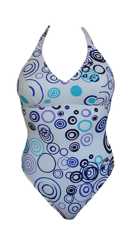 Weißer blickdichter Badeanzug mit Kreismuster und integrierten Softcups BH