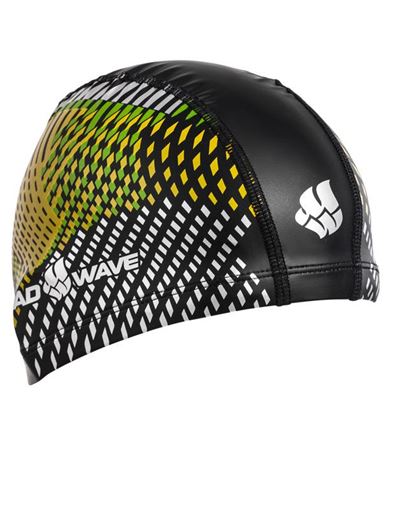 PU swim cap Lines, black, with geometric motif