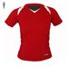 Very nice red running top (with white inserts) for women with v-neck and breathable inserts. The shirt is made of breathable fabric with active moisture transport.