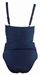 Dark blue halterneck tankini with small blue circles and with integrated underwired bra with cups B