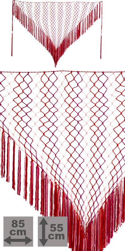 Knotted net pareo with fringes in red and pink