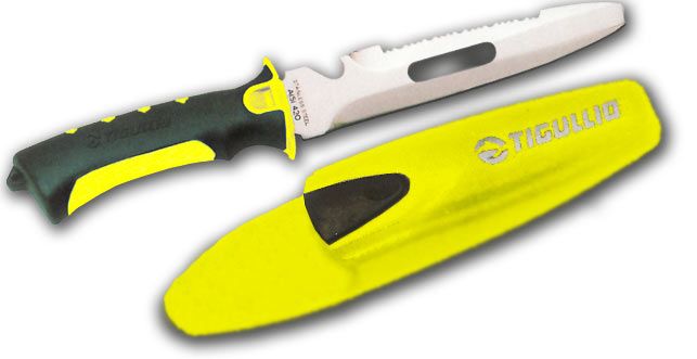 Cuchillo de buceo innovador y de alta calidad. Forma anatómica. Con una hoja afilada y dentada. Incluye una funda de plástico duro que se cierra de forma segura, evitando su pérdida. Un sencillo mecanismo de apertura por presión permite un acceso rápido al cuchillo cuando se necesita. Incluye dos correas de sujeción con hebillas.